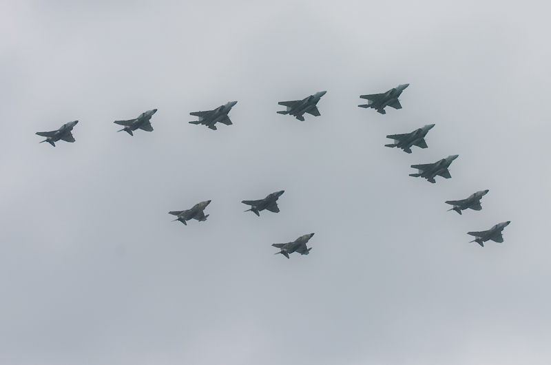 その後の大編隊飛行は想像以上の機数で現れたため、急いで短いレンズのセットを組み立て。やはり初めての基地の航空祭は不慣れな反面楽しいです。