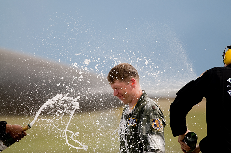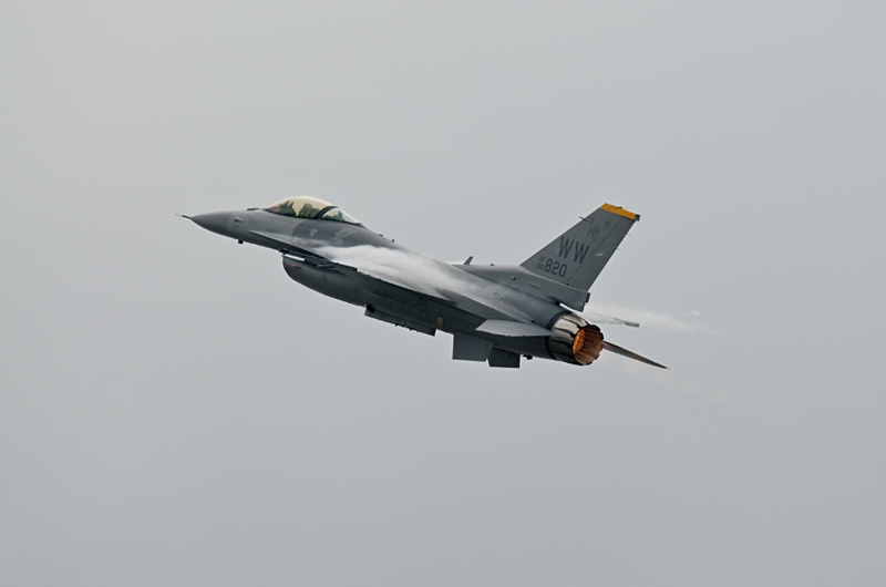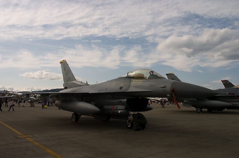 今年も入念な手荷物検査を受け入場。例年どおり地上展示エリアの売店で軽く買い物を済ませてから撮影できるほうのエプロン地区へ。今年はスーパーホーネットのデモは無く、B52のデモフライトも直前になってキャンセルになるなど目玉となるプログラムはありませんでしたが、最後にF16のデモが2回目のフライトを実施。このパイロットさんは今回のフライトがラストだったらしく、機体から降りるとクルーからシャンパン?をかけられていました。