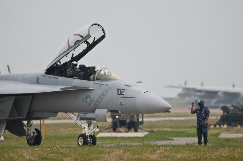 ゲートでの手荷物検査、エプロン地区手前でのホールドを経て会場内へ入り、昨年から行きはじめた有料席へ。相変わらず午前の酷い逆光とコンクリートから立ち上がる陽炎と戦いながら撮影開始。その太陽がようやく右手にずれたと思ったら曇が出てきてブルーの時間には見事な曇天。結局は一日通してモヤっとした写真ばかりが残ってしまいました。