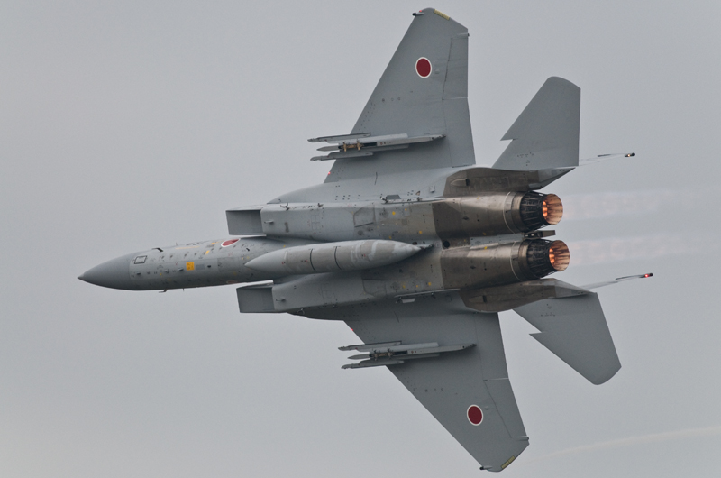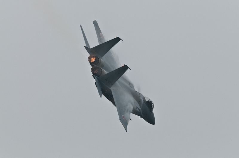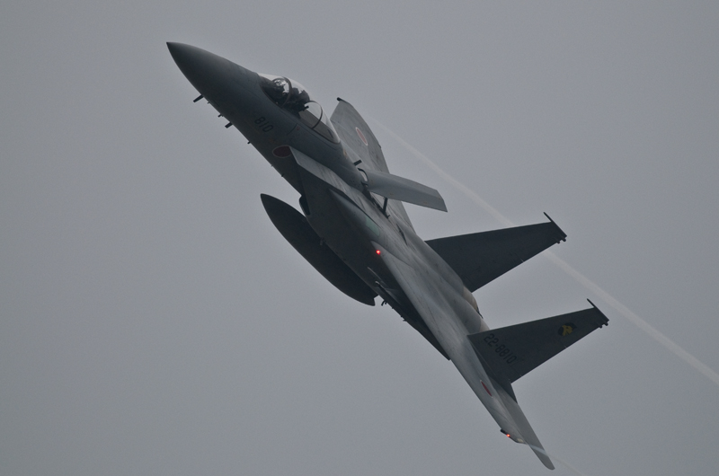 例年の小松航空祭と大きく違っているのはもちろんF4の機動飛行があること。三沢でも小松予行でも見た機体ですが、やはりラストイヤー塗装の黒ファントムは最高です。でも、できれば最後は青空の下で撮りたかった。。