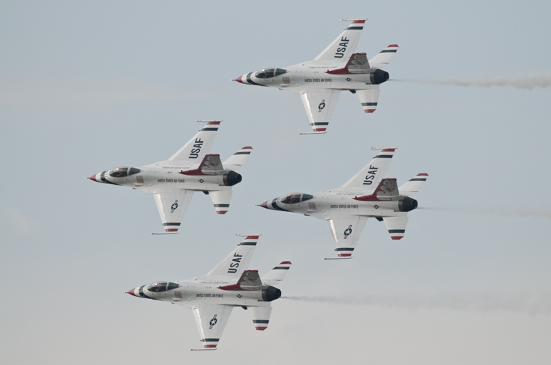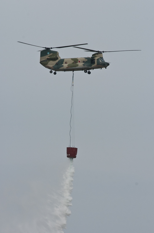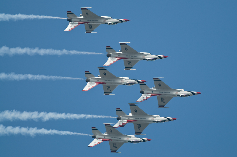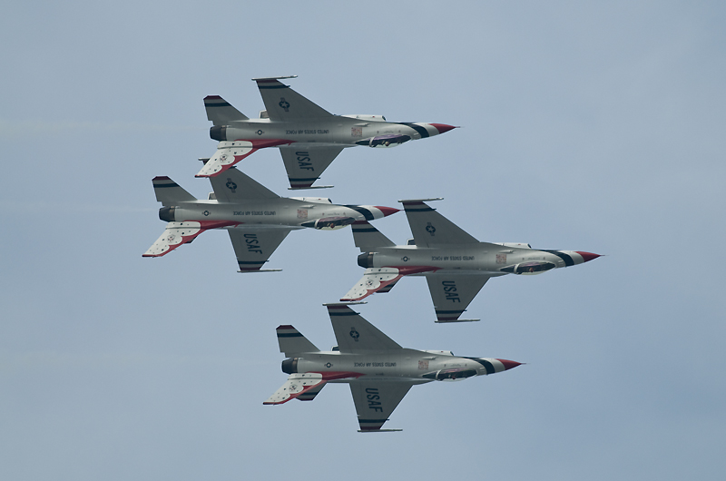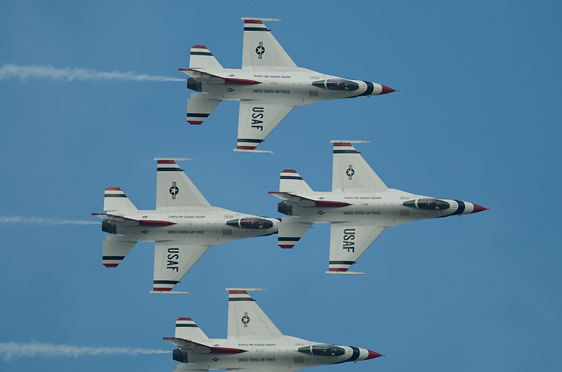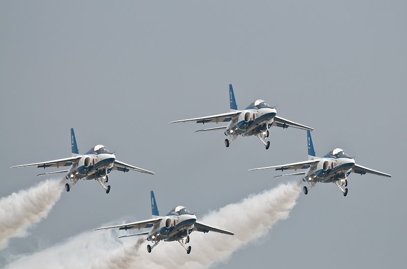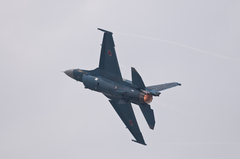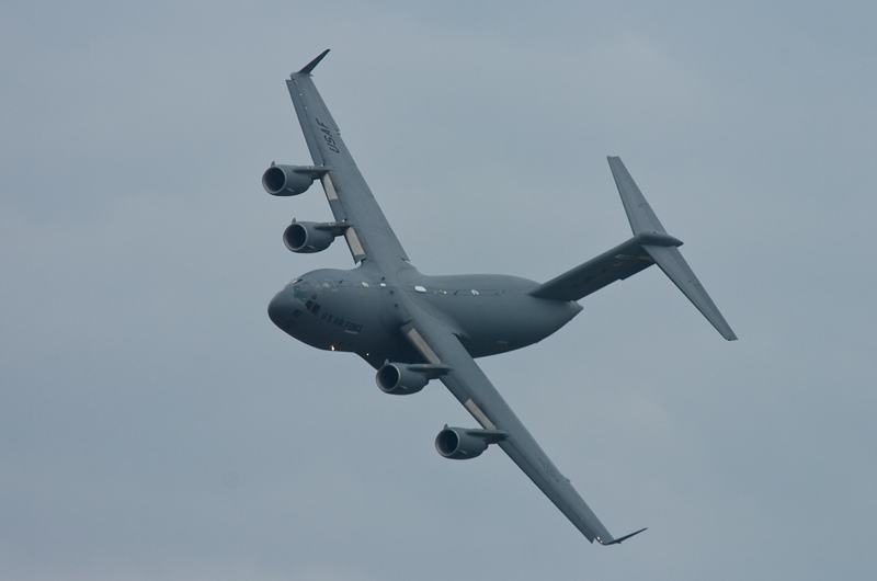 F2の機動飛行はあっさりと終了。CH47の散水展示~ブルーインパルスで午前の飛行展示はお終いの予定でしたが、いきなりC17が激しく機種を上げて離陸。低空で何度も深いバンクの旋廻を披露し、巨大な機体に似合わない高い機動性を見せつけてくれました。午後からはいよいよサンダーバーズの展示飛行。5年前と同じく速すぎてファインダーで追いきれないシーンが多く、いい刺激となりました。
