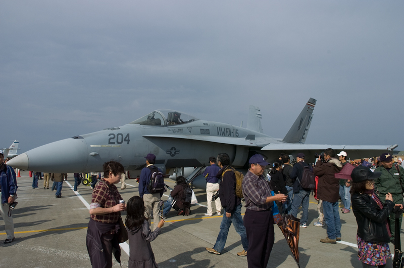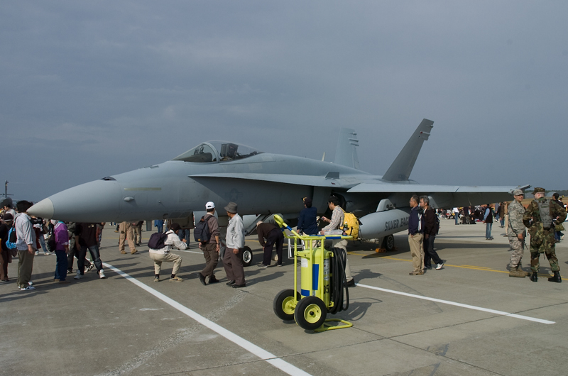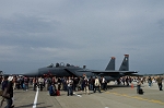 会場に入ると目に飛び込んできたのは見慣れない黒っぽい色のF15。今回もまた何の情報収集もぜずに行ったのでストライクイーグルの展示に驚きつつ地上展示機を撮影開始。しかしどの機体もロープ無しなので人がたくさん写りこんでしまい、撮る気も失せて米軍機を少しだけ撮って終了。