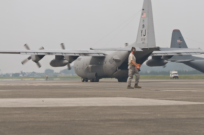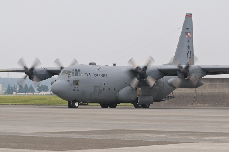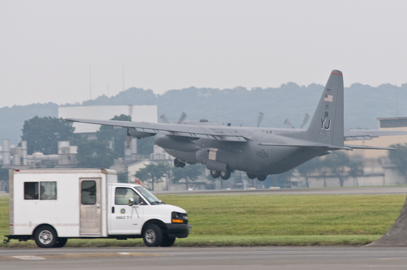 その後は3機のC-130が空挺降下デモを数回実施。その頃にはヨメさんもいい加減飽きてきた感じになってきたので何の未練もなく撤収となりました。