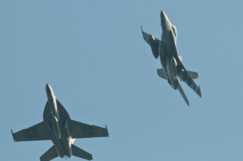祝日で家にいたところ、いろいろな轟音が空から聞こえてきて我慢できなくなり、午後から家族サービス(ドライブ)を兼ねて初めての厚木基地へ行ってきました。
