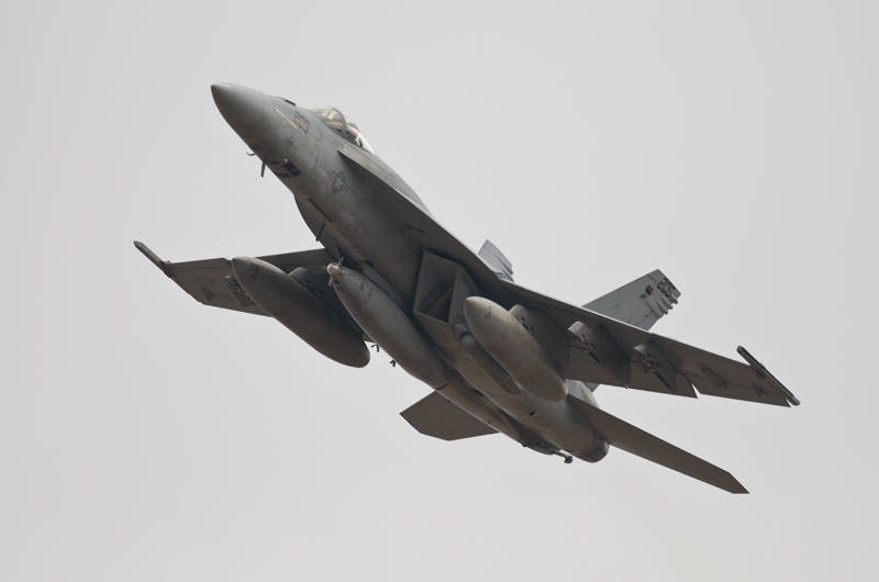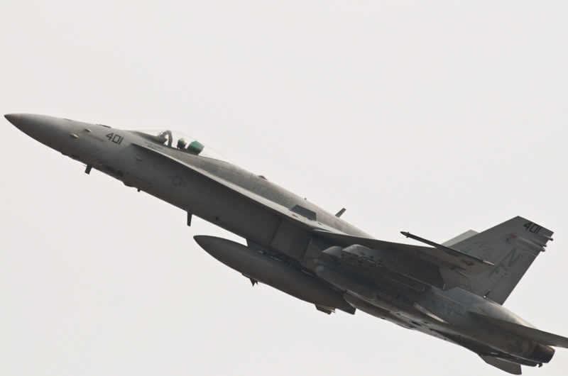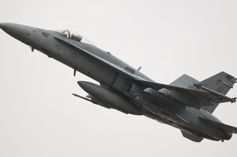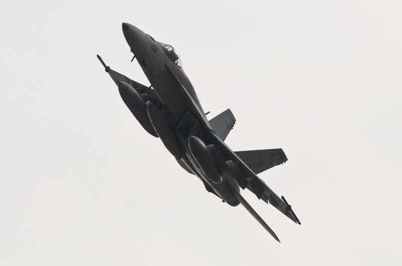 記念すべき今年の撮影1機目は、上空を通過していく横田基地へアプローチするKC-135。その次はJW(僕のイニシャルと同じ!)の記号をつけたC-130。なかなか本命のホーネットが飛ばない。