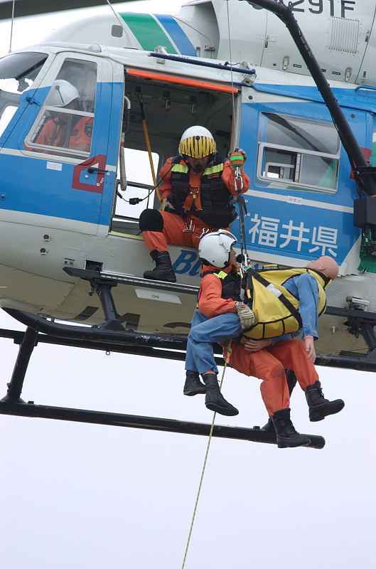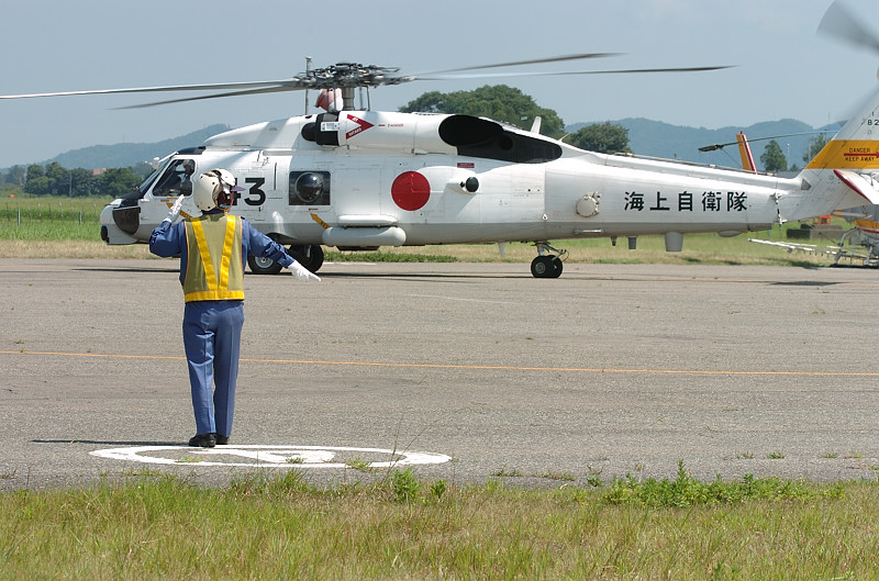 小松で燃料補給した第123航空隊・舞鶴分遣隊のSH-60Jが9時15分頃に福井空港に到着。1回あたり3名が体験搭乗×8フライトを実施。