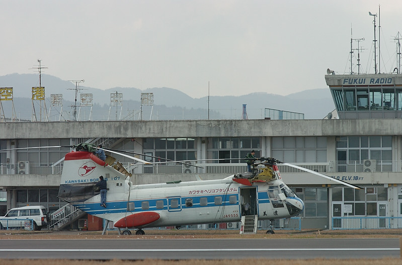 福井空港へカワサキヘリコプターのバートルが飛来しました。(飛来目的は不明ですが数日間ステイ)