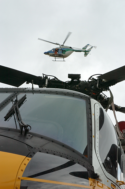 で、結果的には救難展示は実施。雨の中元気に飛んでくれました。今年は自衛隊からも地上展示としてヘリが参加。航空自衛隊小松基地」からはUH-60が展示されていました。陸上自衛隊八尾駐屯地のUH-1展示予定でしたが、こちらは悪天候のためキャンセル。来年からのスカイフェスが楽しみになってきました。