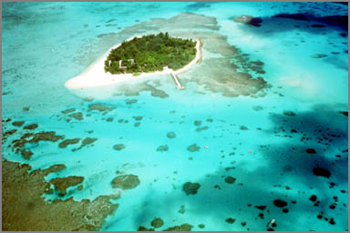 ヨークを手前に引くと、いとも簡単にリフト。まさしくFSと同じだ。え~と、機体が浮いたら脚を引きこんで。。あ、このセスナは固定脚か。と、300フィートくらいから機体が右に傾く。水平に戻してもまた。それに気をとられ、知らぬ間に右手がスロットルレバーを離し、見ると手前に戻ってきている。。隣席からは笑い声が。あんたは怖くないんか?後席もいたってご機嫌。高度が上がるにつれエメラルドグリーンの海が視界に広がっていくのでした。