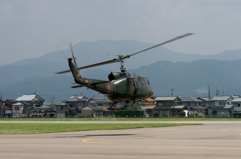 07年8月5日。福井空港で陸上自衛隊のヘリUH-1に体験搭乗してきました。実はヘリコプターに乗るのは生まれて初めての体験。2年前にも体験搭乗のチャンスがあったのですが、悪天候のため中止となってしまい今回ようやく乗ることができました。