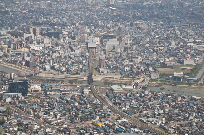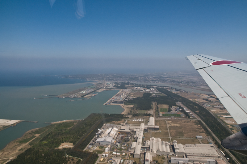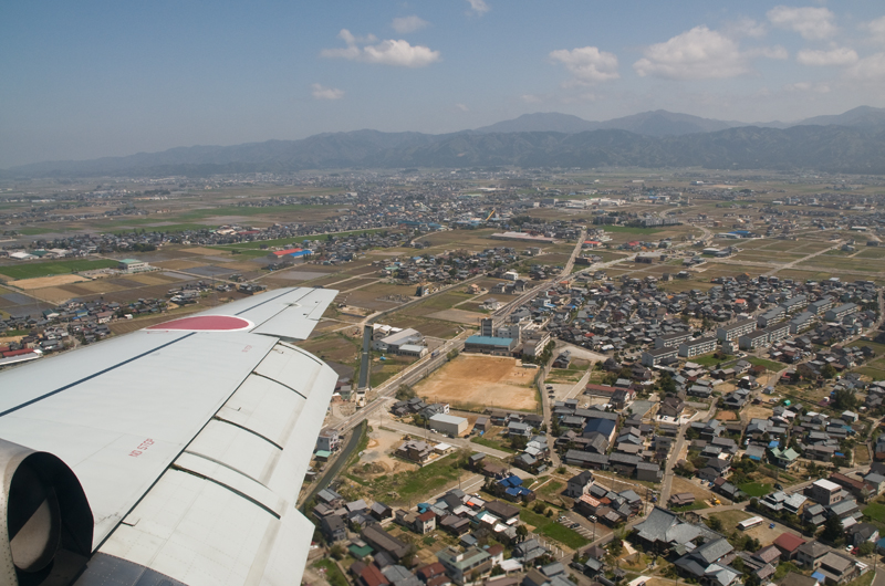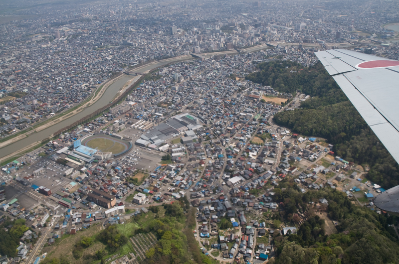 フライトは2回実施。僕は1回目のフライトに搭乗。客室内は博物館の屋外に展示されている民航機と同じような感じで、座席に座っていても違和感のないものでした。 フライトコースは一旦日本海にぬけてから福井市街地上空へ。JR福井駅の周辺を何度も左右旋廻し、どの席からも上空から地上の風景が満喫できる大サービス。 最後は我が母校のグラウンド上空を通過して福井空港に戻ったのでした。